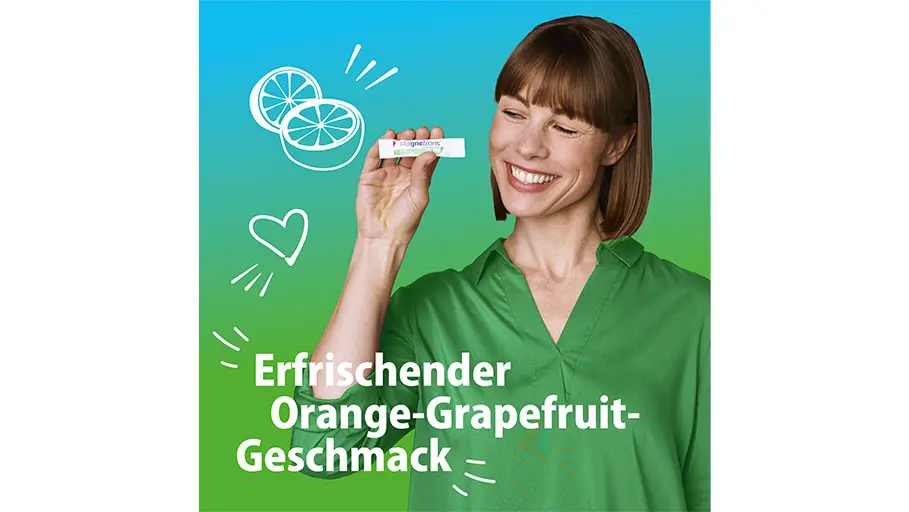 Mit Magnetrans® Direkt-Granulat 375 mg decken Sie 100 % des täglichen Magnesium-Bedarfs2 mit nur einer Portion. Die Sticks sind dabei besonders praktisch für unterwegs und versorgen Sie zu jeder Zeit und an jedem Ort mit Magnesium. Kombiniert mit einer ausgewogenen Ernährung, trägt Magnetrans® Direkt-Granulat zu Ihrem individuellen Magnesium-Haushalt bei. Achten Sie etwa auf die ausreichende Verwendung magnesiumhaltiger Lebensmittel. Besonders geeignet ist das Produkt für Frauen in der Schwangerschaft, Stillzeit oder Menopause. Das Magnesium-Direkt-Granulat löst sich angenehm leicht im Mund auf und schmeckt lecker nach Zitrone-Grapefruit. Magnetrans® Direkt-Granulat 375 mg ist vegan, laktose- und glutenfrei.